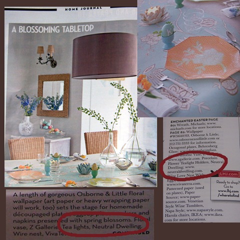I hear the garage door open and run down the stairs- There it is - Page 82 March 2008 LHJ !!! The layout is called "A Blossoming Tabletop" and there they are- the Roost Porcelain Tea lights- and there, there it is Neutral Dwelling! Oh look- it says Where to Find It- Page 170- I flip quickly to that page-there it is again- Neutral Dwelling- www.NeutralDwelling.com !!! I turn back to page 82- Oh it looks lovely!!!- I turn the page- Page 84- there is another picture of the Tea light. I am now dancing around the kitchen!!!!!!!!